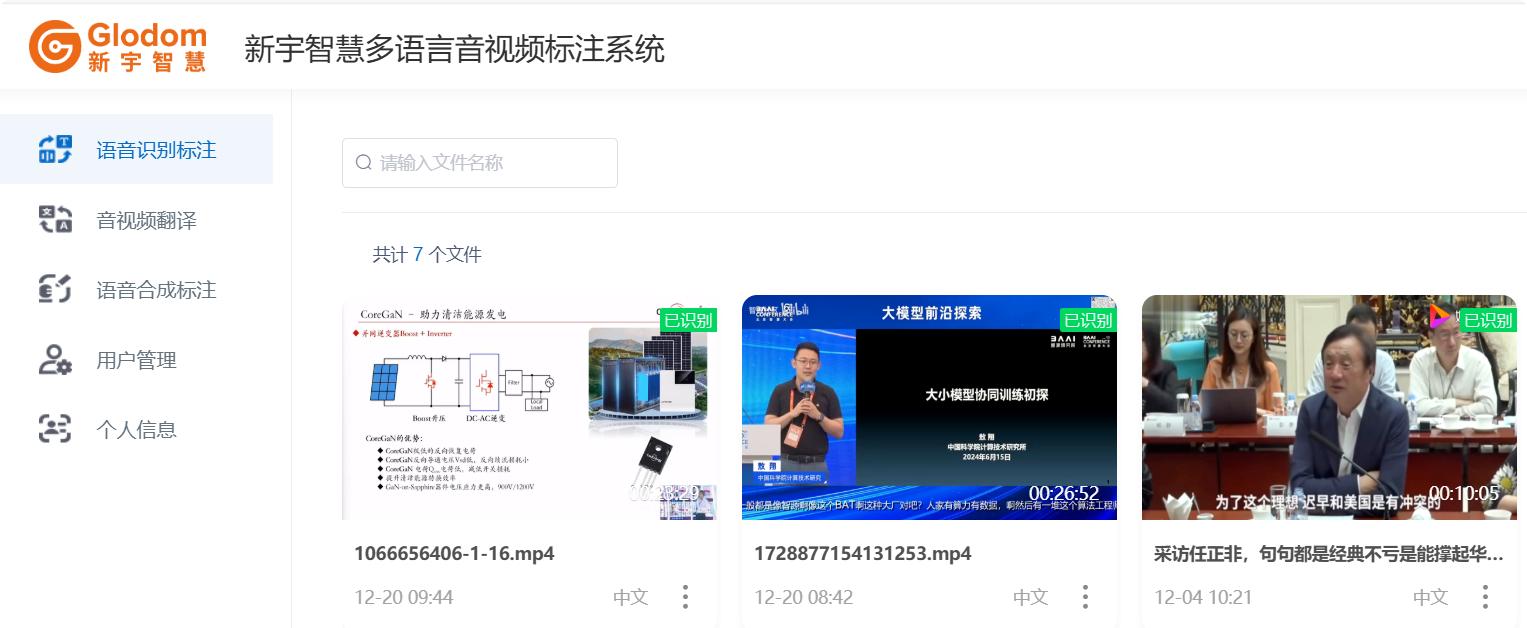 新宇智慧自主研發(fā)的多模態(tài)語音標注平臺,集成語音識別標注、音視頻翻譯、語音合成標注等核心模塊,全面支持文本譯后編輯與多語言處理,為AI語音模型訓練提供高精度、高效率的數(shù)據(jù)服務(wù)解決方案。