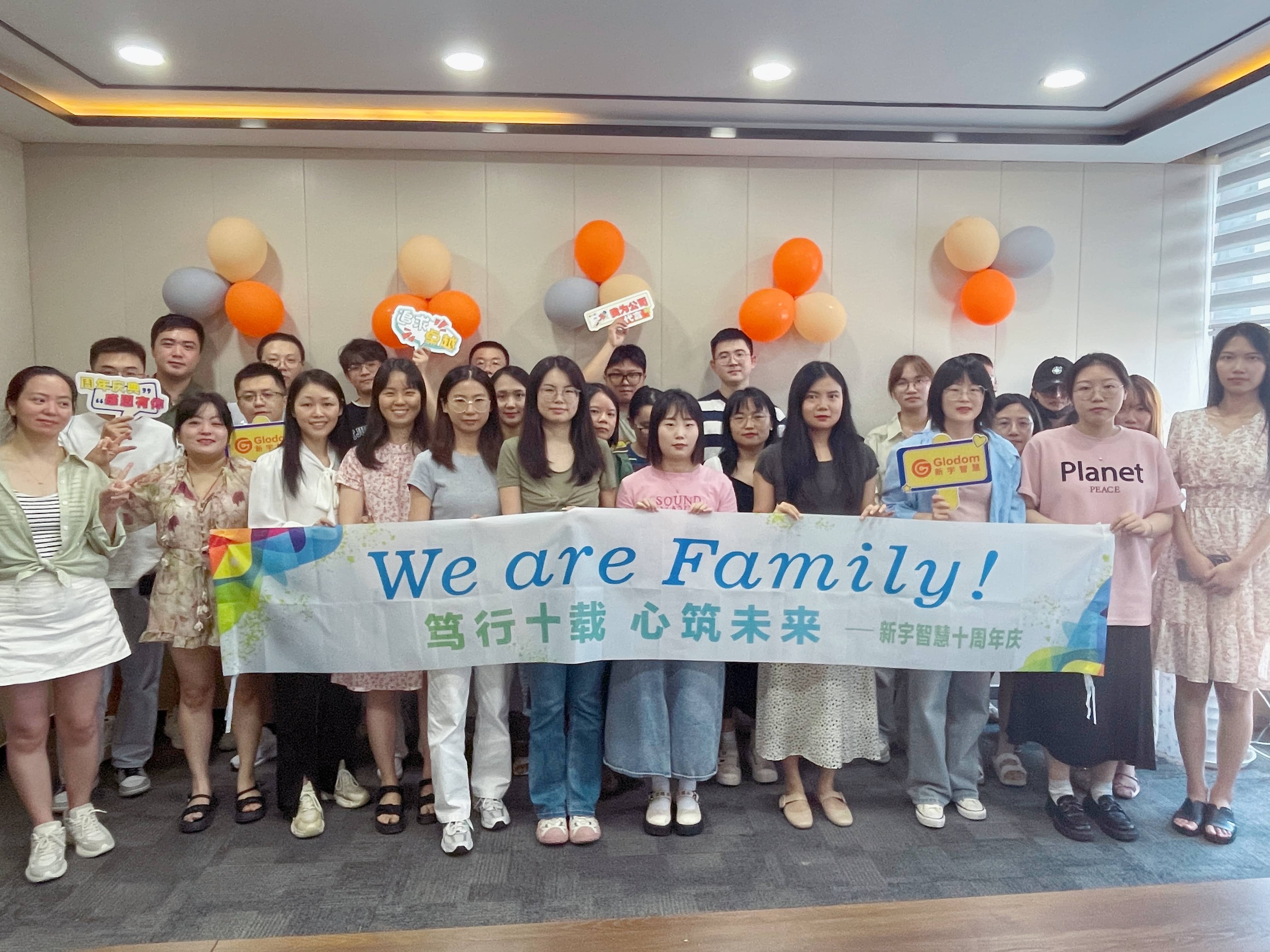 慶典在大家的歡聲笑語(yǔ)中達(dá)到了高潮。全體成員齊聚一堂,留下了珍貴的合影留念。面對(duì)鏡頭,大家齊聲高呼“篤行十載,心筑未來(lái),We are Family”的口號(hào),這不僅是對(duì)新宇智慧過(guò)去十年取得成績(jī)的總結(jié)與致敬,更是對(duì)未來(lái)無(wú)限可能的期許與承諾。在這個(gè)充滿愛(ài)與夢(mèng)想的時(shí)刻,新宇智慧人攜手并進(jìn),共同邁向更加輝煌燦爛的明天!