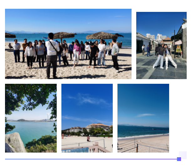 We soon arrived at our first stop: Delta Island, the first privateisland with legal property rights in China. Known as the "Maldives of China", it covers an area of 16 hectares and is renowned in the SouthChina Sea for its crystal-clear waters, unique rock formations and white sandbeaches. We had been looking forward to seeing the island for some time, andonce we saw the breathtaking scenery with our own eyes, it was clear that itdeserved its sterling reputation. The clear waters, blue skies, and picturesquebeaches were straight out of a travel catalogue, and everyone was in awe. Manypeople couldn't wait to take off their shoes and socks to feel the sand betweentheir toes. Others passed the time with various beach games, all while soakingin the beautiful island views and warm winter sunshine. All of the games helpedput everyone at ease and allowed us all to become more familiar with eachother.