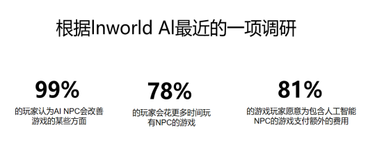 最后,人工智能可以讓游戲中出現(xiàn)更多更好的非玩家角色(NPC),從而通過讓游戲環(huán)境更具沉浸感來提高玩家滿意度。根據(jù)InworldAI最近的一項調(diào)查,99%的玩家認(rèn)為基于人工智能的NPC會改善游戲玩法的某些方面,78%的玩家會花更多時間玩有人工智能NPC的游戲,81%的玩家愿意為有人工智能NPC的游戲支付額外費(fèi)用。